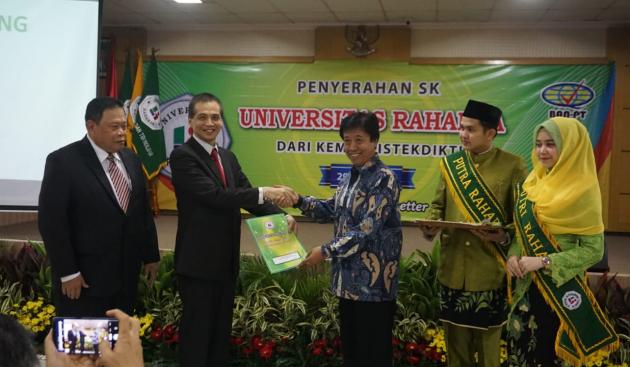 Surat keputusan (SK) perubahan status itu diserahkan Kepala LLDIKTI Wilayah IV Uman Suherman kepada Rektor Universitas Raharja Po Abas Sunarya di aula Universitas Raharja, Kota Tangerang, Sabtu (29/6/2019).