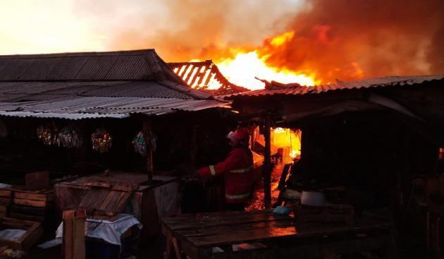Dugaan sementara, kebakaran akibat korsleting listrik dari salah satu kios di dalam pasar. Api pertama kali muncul di bagian tengah pasar kemudian merembet ke kios lainnya.