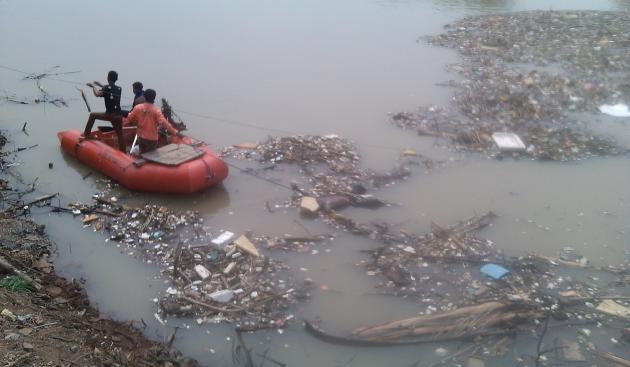 Mayat pria yang diduga korban pembunuhan itu tersangkut diantara sampah yang menumpuk di bawah Jembatan UNIS, tak jauh dari pemakaman Tanah Gocap.