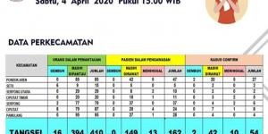 TANGERANGNEWS.com-Tim Gugus Tugas Penangan virus Corona (COVID-19) Kota Tangerang Selatan kembali mempublikasikan, hingga Sabtu, 4 April