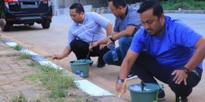 TANGERANGNEWS.com-Para pegawai Pemerintah Kota Tangerang kembali menggalakkan program Jumat Bersih dengan melakukan pengecatan kanstin dan median jalan kota, Jumat, 4 November 2022.