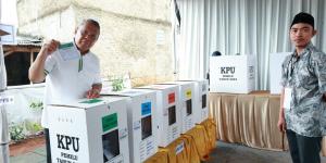 TANGERANGNEWS.com-Wali Kota Tangerang Selatan (Tangsel) Benyamin Davnie dan Wakil Wali Kota Tangsel Pilar Saga Ichsan menggunakan hak pilihnya dalam Pemilu 2024, Rabu 14 Februari 2024.