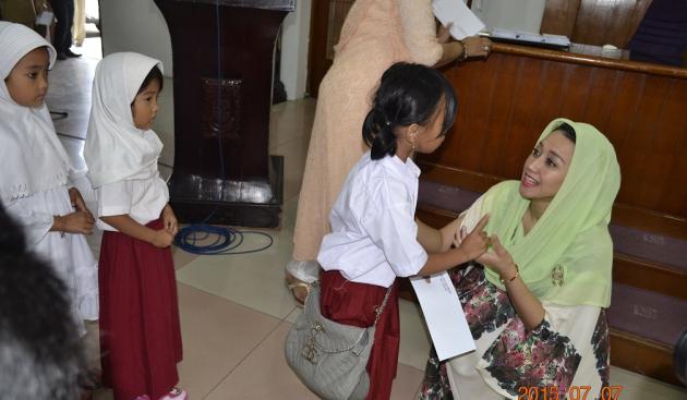 Wanita cantik yang merupakan istri dari Bupati Tangerang Zaki Iskandar memilih berbagi dengan ratusan anak yatim di Kabupaten Tangerang yang dilaksanakan di Pendopo Bupati Tangerang, di Jalan Kisamaun, Kota Tangerang.