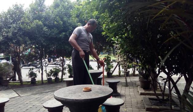 "Nyapu itu enggak harus seorang wanita. Laki laki juga kalau peduli kebersihan pasti akan dilakukan," nada suara irit Edy.