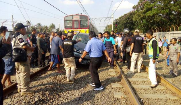 "Mobilnya langsung menerobos masuk (rel Stasiun Batu Ceper) walaupun penjaganya sudah mencegahnya," ujar Haris Setiawan, warga di lokasi kejadian.