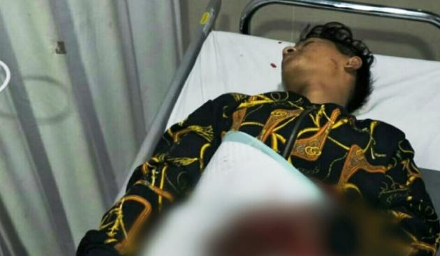 MA, remaja putus sekolah dari SMK Mandiri Panongan harus dilarikan ke RS Hermina, Bitung karena mengalami sejumlah luka bacok serius di tangan dan kakinya.