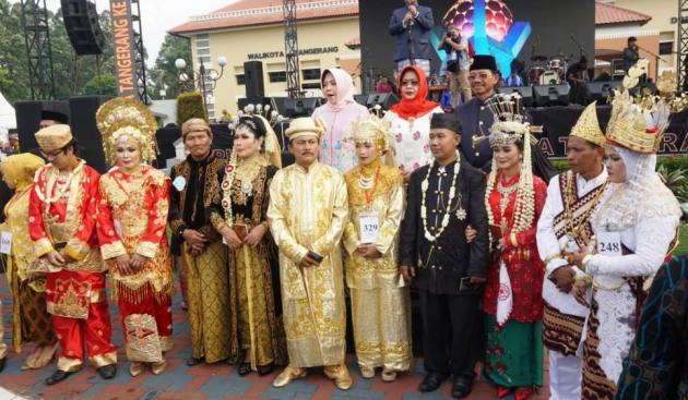 Acara Tangerang Ngebesan dalam rangka memeriahkan HUT Kota Tangerang ke-26 itu ramai dipadati ribuan keluarga pengantin yang menyaksikan para mempelai menerima buku nikah.