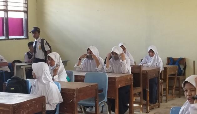 Para siswa pun terpaksa mengenakan masker demi menghindari debu yang berasal dari proyek nasional itu. Bahkan, sejumlah murid juga berinisiatif menyapu kelasnya yang terpapar debu proyek.