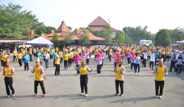 TANGERANGNEWS.com-Satuan Lalu Lintas (Satlantas) Polresta Tangerang memperingati Hari Lalu Lintas Bhayangkara ke-64 dengan menggelar senam bersama, Jumat (6/9/2019).