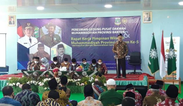 Gedung pusat dakwah tersebut diresmikan Sekretaris Umum Pengurus Pusat Muhammadiyah Abdul Muti sekaligus membuka Rapat Kerja Muhammadiyah Provinsi Banten ke-5 dengan tema 'Memajukan Banten Mencerahkan Semesta', Minggu (11/4/2021).
