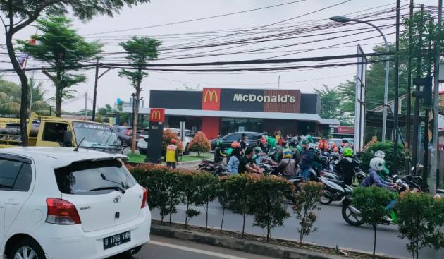 TANGERANGNEWS.com-Banyaknya orderan menu BTS Meal di restoran cepat saji McDonald's (McD) menyebabkan kerumunan driver ojek online (Ojol).