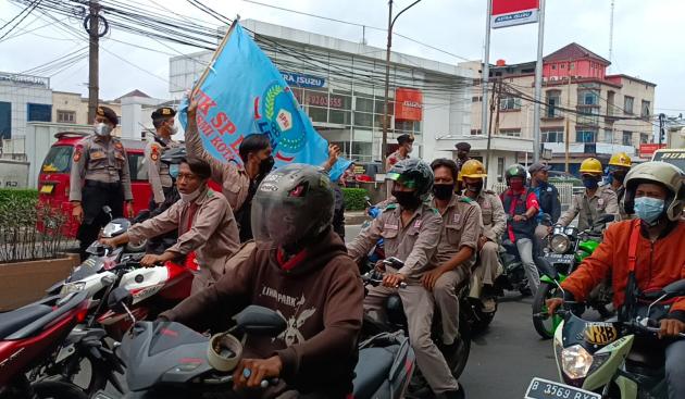 Pergerakan massa buruh yang melakukan konvoi kendaraan ini mengakibatkan lalu lintas di Jalan Gatot Subroto, Jatiuwung, Kota Tangerang, macet. Selain konvoi kendaraan, massa buruh juga melakukan mogok kerja di depan pabriknya.