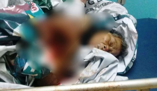 Kini korban yang mengenakan daster batik dan kerudung hitam ini dibawa ke RSUD Tangerang untuk mendapatkan pertolongan medis.