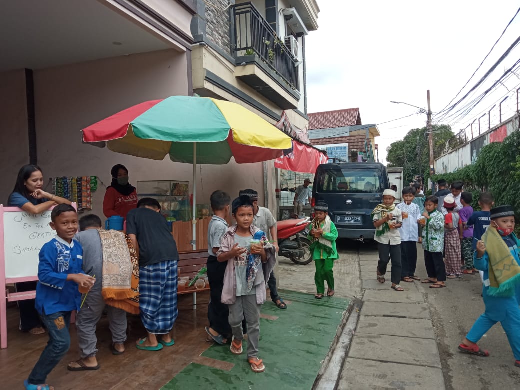 TANGERANGNEWS.com-Kafe Sawarna yang berlokasi di kawasan Masjid Al-Islah, Jalan Meteorologi, RT03/08, Kelurahan Tanah Tinggi, Kota Tangerang, berbagi puluhan es teh gratis kepada jamaah Salat Jumat.