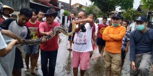 Minggu, 22 Maret 2020 | 11:11Ular Sanca 4 Meter Ditangkap Warga di Area Banjir BenconganTANGERANGNEWS.com-Warga rukun warga (RW) 25, Kelurahan Bencongan, Kecamatan Kelapa Dua, Kabupaten Tangerang menangkap ular sanca saat banjir merendam wilayah tersebut, Minggu (22/3/2020)