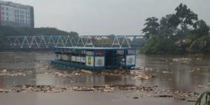 TANGERANGNEWS.com- Sebuah perahu tersangkut di Pintu Air 10, Kota Tangerang, diduga gegara terbawa arus, Rabu 15 Maret 2023.
