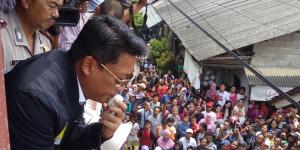 TANGERANG- Dirkrimum Polda Metro Jaya Kombes Pol Krishna Murti pergi dari lokasi menuju Polsek Cikupa setelah melihat seribu lebih massa yang memadati lokasi mutilasi wanita hamil, Astiyah alias Nuri, 34, di kontrakan Kampung Telaga Sari, Desa Telaga Sa