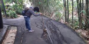 Jalan Retak Akibat Pergeseran Tanah Ancam Warga Cirendeu