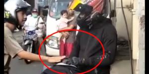 Seorang pria yang berkendara roda dua, jenis motor gede diduga merek Kawasaki dengan nomor polisi B 3578 SZX memukuli seorang warga di Jalan H Gedad, Paninggilan, Ciledug, Kota Tangerang.