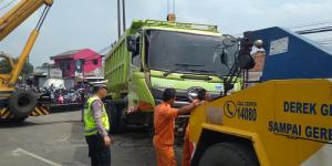 Sopir Truk Mengantuk Tabrak Pembatas Jalan di depan Chingluh Tangerang