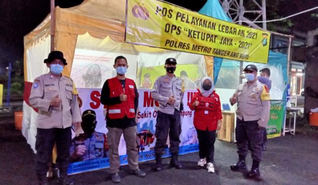 TANGERANGNEWS.com-Palang Merah Indonesia (PMI) Kota Tangerang membuka posko pelayanan selama 24 yang yang terbagi 3 kloter, untuk membantu instansi pemerintah maupun pihak keamanan dalam melakukan pemantauan di jalur penyekatan pemudik di daerah perbatasan Kota Tangerang, Jumat (7/5/2021).