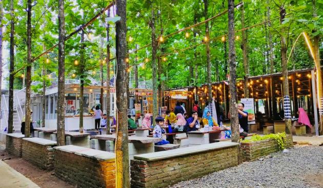 Kendati demikian, kafe ini tak pernah sepi pengunjung untuk menikmati suasana teduh bersantai dengan dikelilingi pohon jati yang dihias menggunakan lampu-lampu, sehingga menambah keindahan di kafe ini.