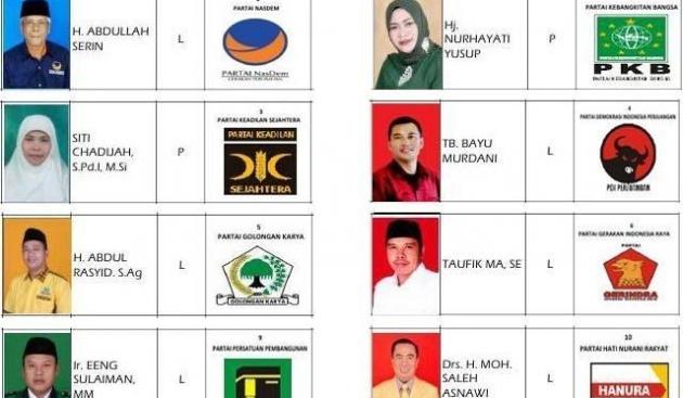 Mereka adalah Taufik MA (Gerindra), Eeng Sulaiman ( PPP), Abdullah Serin (Nasdem) dan Soleh Asnawi (PBB sebelumnya Partai Hanura).