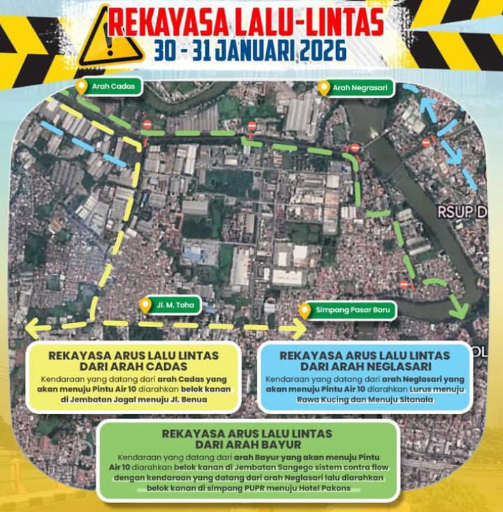 Berdasarkan informasi resmi yang disampaikan melalui akun Prokopim Kota Tangerang, rekayasa lalu lintas akan diberlakukan mulai 28 hingga 31 Januari 2026.