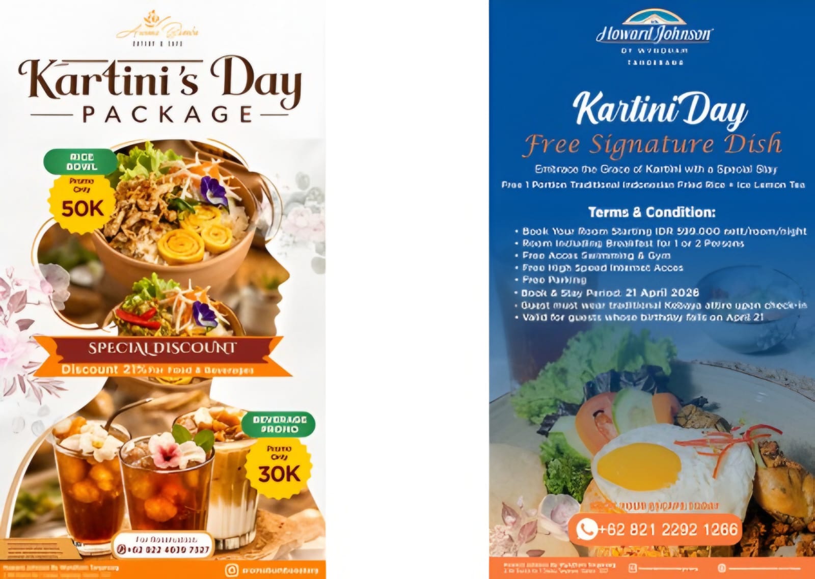 Terdapat promo rice bowl seharga Rp 50.000 nett per porsi lengkap dengan minuman gratis, serta promo minuman seharga Rp 30.000 nett dengan pilihan Kartini Blossom Lychee Tea, Java Rose Milk Tea, dan Kartini Palm Sugar Latte.