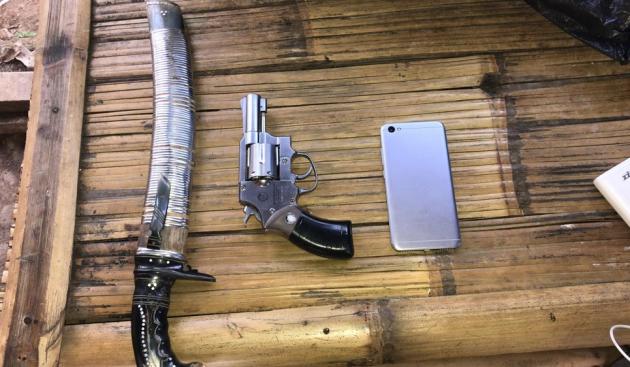 Saat ditangkap, dari tersangka polisi mengamankan sejumlah barang bukti, diantaranya satu unit televisi 32 inci, satu pucuk senjata api jenis air softgun berikut enam butir amunisi, sebilah senjata tajam, satu buah telepon genggam, dan satu buah setrika.