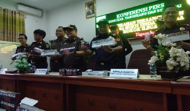 "Tersangka dengan mobil minibus mengangkut 40 bal atau sebanyak 160 ribu batang rokok ilegal. Rokok ilegal itu akan ditimbun di suatu tempat di daerah sekitar Cisoka dan dijual kembali secara eceran ke warung-warung di wilayah Kabupaten Tangerang," ujar Kepala Kantor Bea Cukai Tangerang Aris Sudarminto saat jumpa pers di Kantor Kejaksaan Negeri Kabupaten Tangerang, Rabu (30/10/2019).