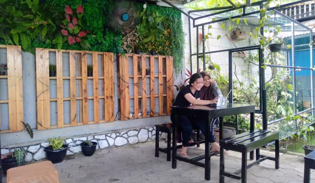 "Udah sering ke sini terus enak tempat cocok buat zoom meeting atau kelas online, menu makanan minumannya juga murah dan enak sih buat aku yang masih pelajar," ujar Annisa, salah satu pengunjung Teras Cafe, Senin (1/3/2021). (RAZ/RAC)