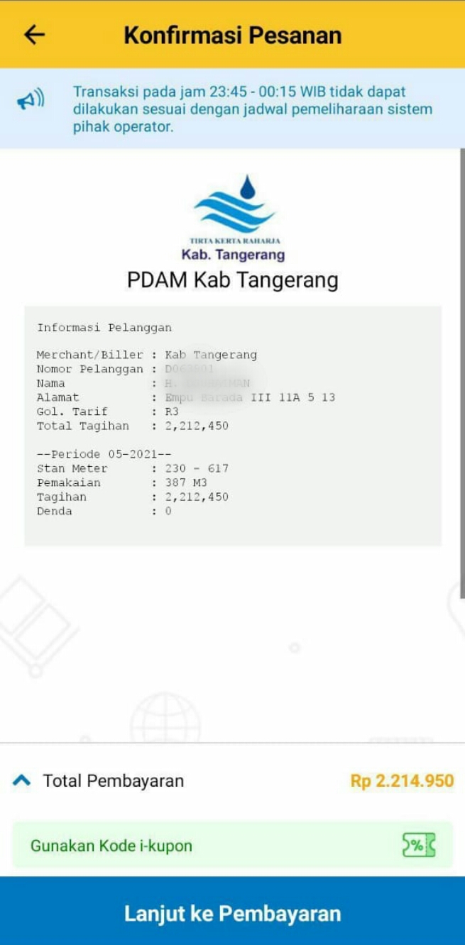 Tiba-tiba pada bulan Mei, tagihan melonjak menjadi Rp2.212.450. Jumlah pemakaian air pun mencapai 387 meter kubik.