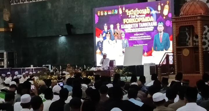 TANGERANGNEWS.com - Pemerintah Kabupaten (Pemkab) Tangerang menggelar acara istighosah, penggalangan dana dan sholat gaib di Masjid Agung Al-Amjad pada Senin 29 Desember 2025.