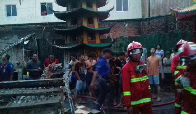 "Mereka minta tolong, dibantu warga pakai tangga berhasil keluar lewat pagar. Sementara empat orang lainnya, Selly dan anaknya, Cing-Cing, serta Cek Api dan istrinya Soso, diduga terjebak di dalam Vihara sehingga tewas terbakar," katanya.