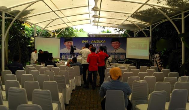 Di pekarangan rumah Wahidin telah di sediakan tenda untuk tempat Quick Count. Di sana juga ada layar televisi, puluhan tempat duduk dan meja yang disiapkan untuk konferensi pers.