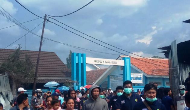 TANGERANGNEWS.com-Para guru dan siswa SMPN 1 Kosambi panik saat kejadian ledakan mercon di gudang kembang api ketika sedang berlangsung, Kamis (26/10/2017).