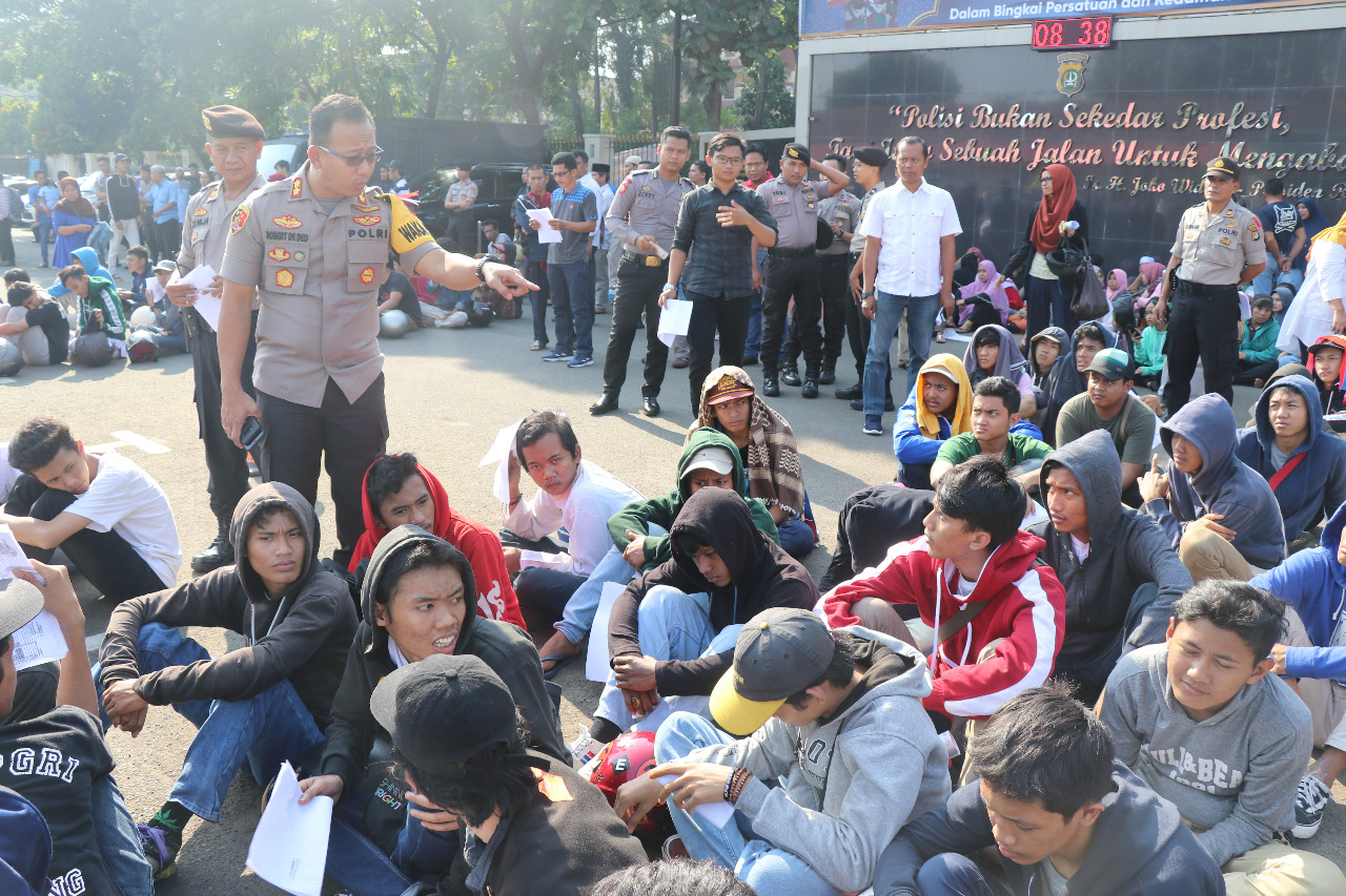"Selanjutnya dikembalikan kepada orang tua masing-masing dilengkapi surat pernyataan, sebelum diserahkan kepada orang tua diberi arahan Kasat Bimas dulu," ucap Dicky.