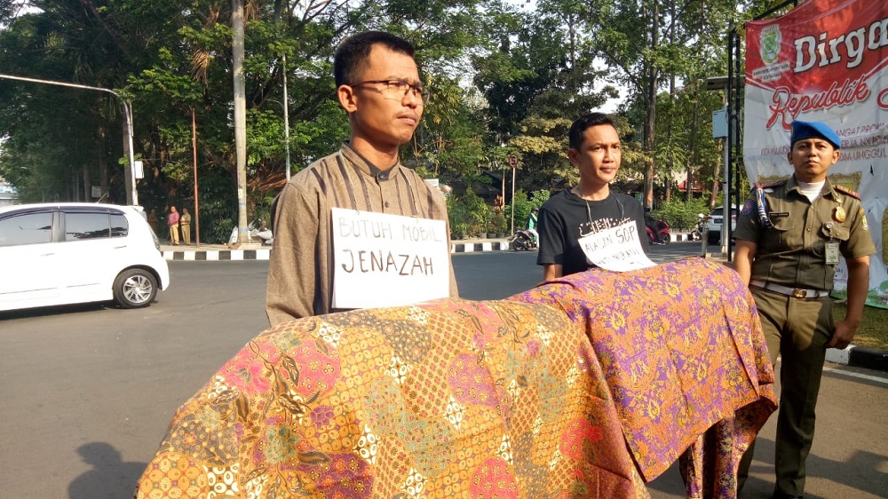 Awalnya, dua warga yang menggotong jenazah replika tersebut mendatangi Pusat Pemerintahan Kota Tangerang saat para Aparatur Sipil Negara (ASN) apel pagi.