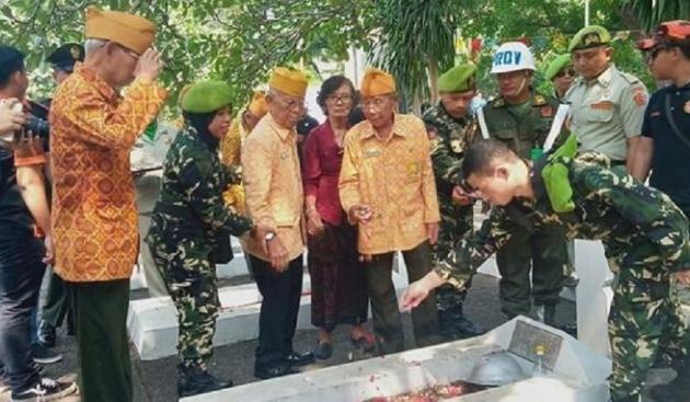Setelah apel kehormatan yang berlangsung dengan khidmat, mereka pun langsung menaburkan bunga di makam-makam pahlawan, salah satunya makam Daan Mogot.