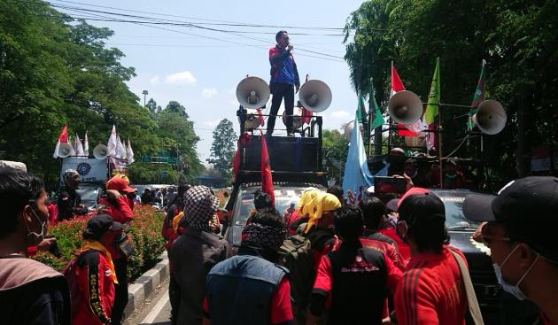 "Cuma mulai tadi pagi seluruh serikat buruh di titik-titik manapun semua sudah diblokir," katanya.