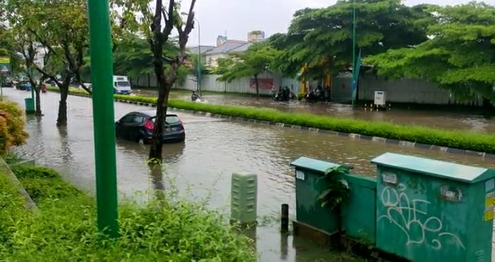 Menurut Wawan, air yang menggenangi ruas jalan mengakibatkan kendaraan terutama sepeda motor tidak dapat melintas.