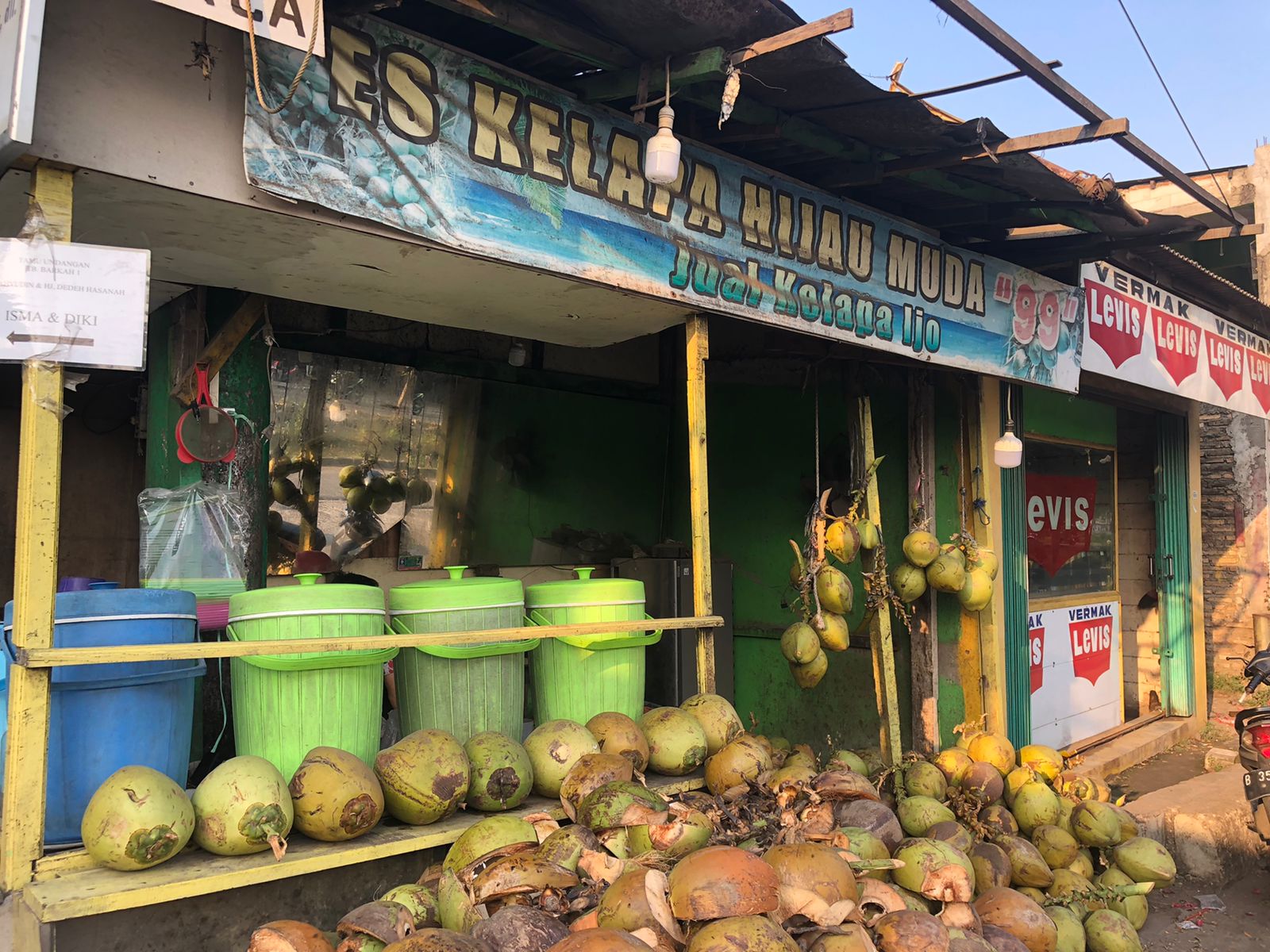 Waktu awal pandemi Covid-19, air kelapa banyak dicari masyarakat karena dianggap mampu memberikan banyak manfaat kesehatan bagi tubuh. Namun, di tahun ini ternyata pedagang es kelapa muda yang biasa mangkal di dekat jembatan simpang tiga di Jalan Garuda, Kecamatan Belendung, Kota Tangerang omzetnya turun drastis selama masa pandemi yang berkepanjangan.
