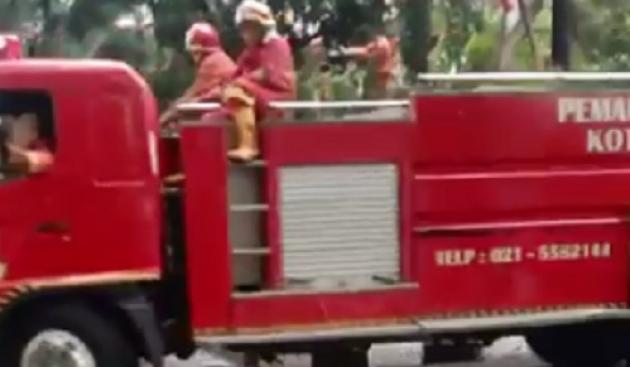 Tangkapan layar satu unit mobil pemadam kebakaran menuju lokasi kebakaran. (@TangerangNews / Achmad Irfan Fauzi )
