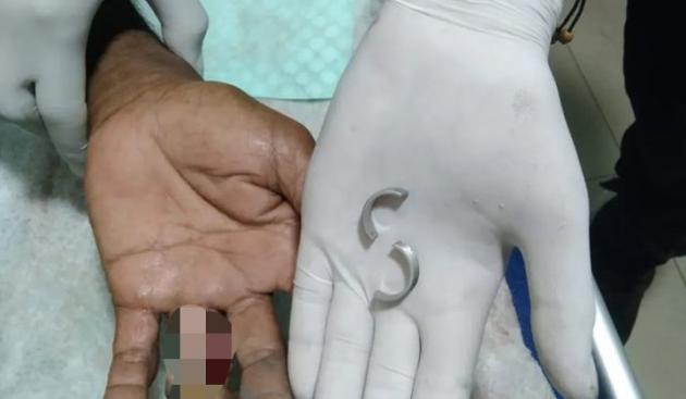 Terlihat dalam video, bagian tengah dari jari manis korban terluka cukup parah hingga terkelupas kulit dan terlihat tulangnya, sementara di bagian pangkal jari terdapat cincin baja yang menyangkut.