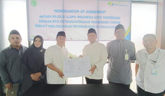 TANGERANGNEWS.com - Majelis Ulama Indonesia (MUI) Kota Tangerang resmi bekerja sama dengan BPJS Ketenagakerjaan Cabang Cimone.