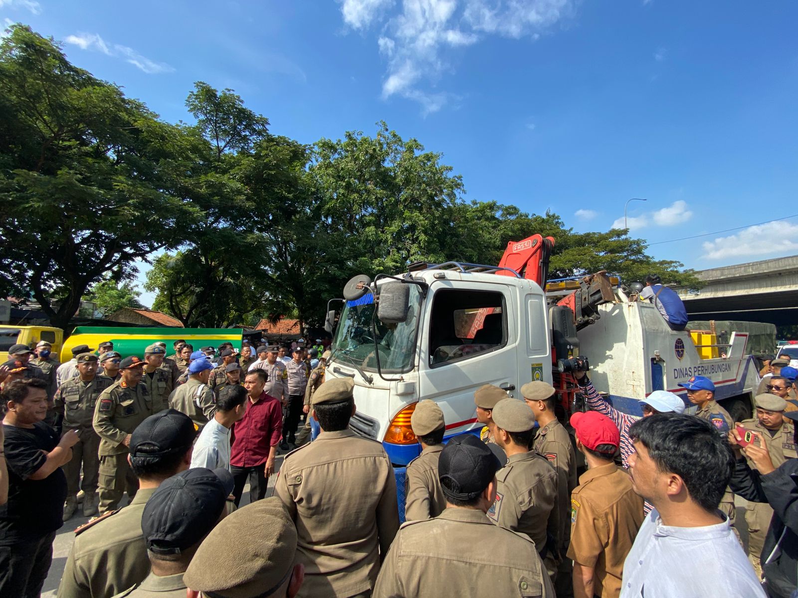 Bahkan warga juga menghadang alat berat Dinas Perhubungan (Dishub) Kota Tangerang yang diterjunkan untuk melakukan pembongkaran.