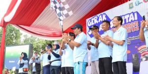 Ketua DPRD, Rusdi Alam dan Wakil Ketua II DPRD, Arief Wibowo menghadiri Gerak Jalan Santai pada peringatan Hari Guru Nasional dan HUT Persatuan Guru Republik Indonesia (PGRI) ke-79. Kegiatan diikuti ribuan guru di Taman Elektrik.