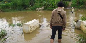 TANGERANGNEWS.com-Sungai Cisadane kembali meluap. Kali ini, air luapan tersebut telah merendam sebuah jembatan yang terletak di Kampung