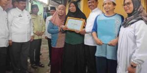 Wali Kota Tangerang Sachrudin, memberikan penghargaan kepada Yunanih, warga Kelurahan Kenanga, Kecamatan Cipondoh, yang menunjukkan kedisiplinan luar biasa dalam membayar Pajak Bumi dan Bangunan (PBB).